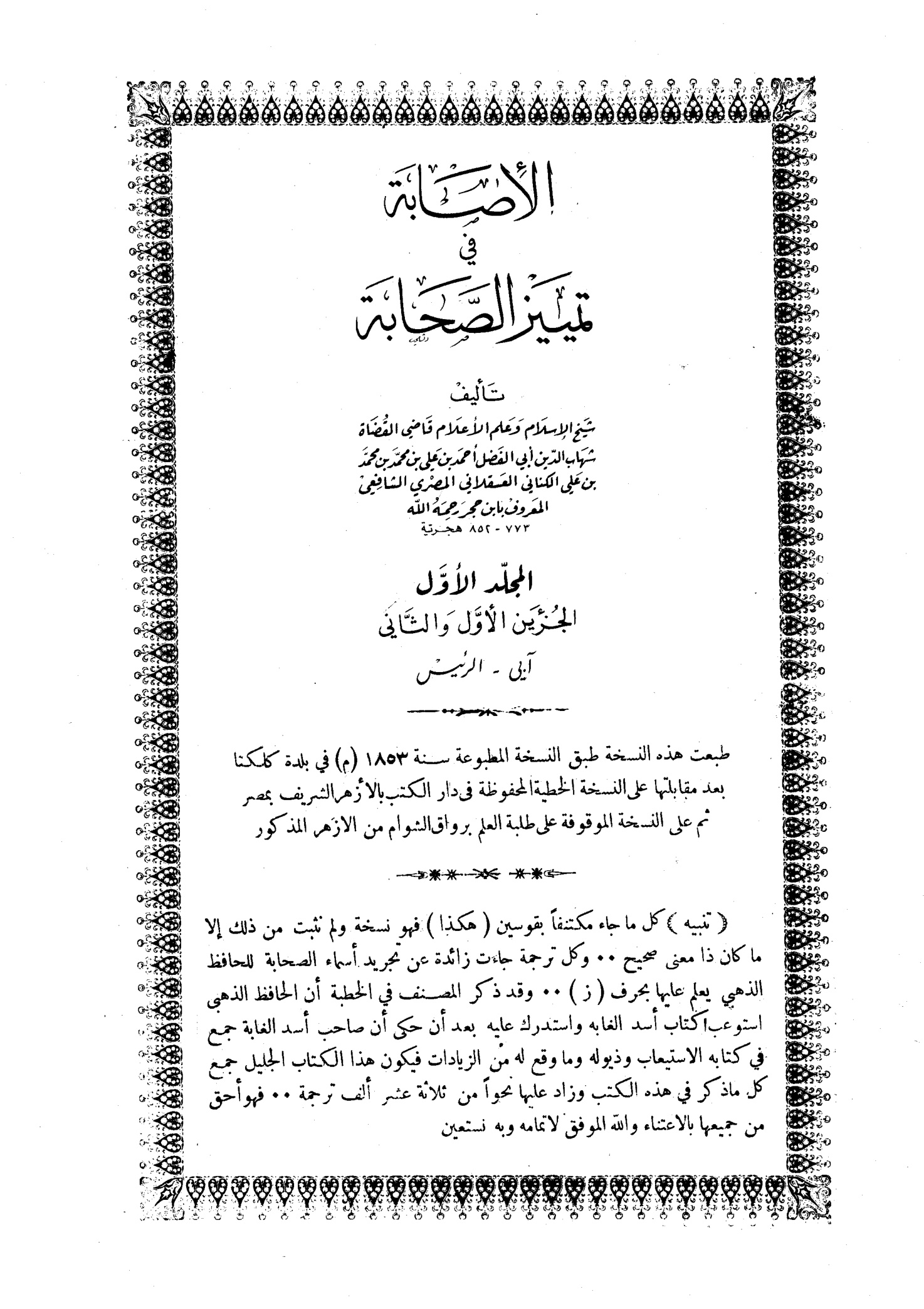 الإصابة في تمييز الصحابة المجلد الثاني
