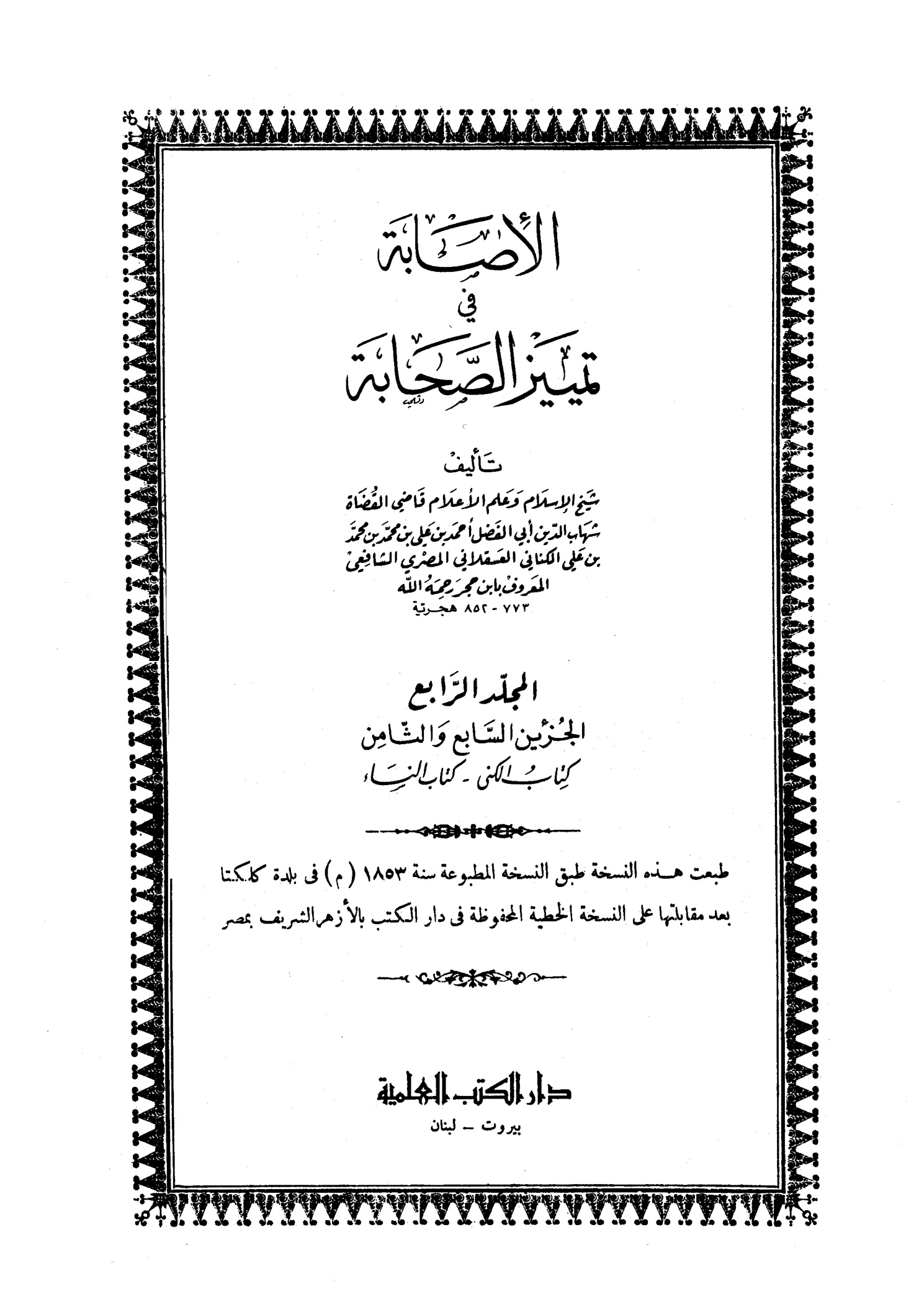 الإصابة في تمييز الصحابة المجلد السابع