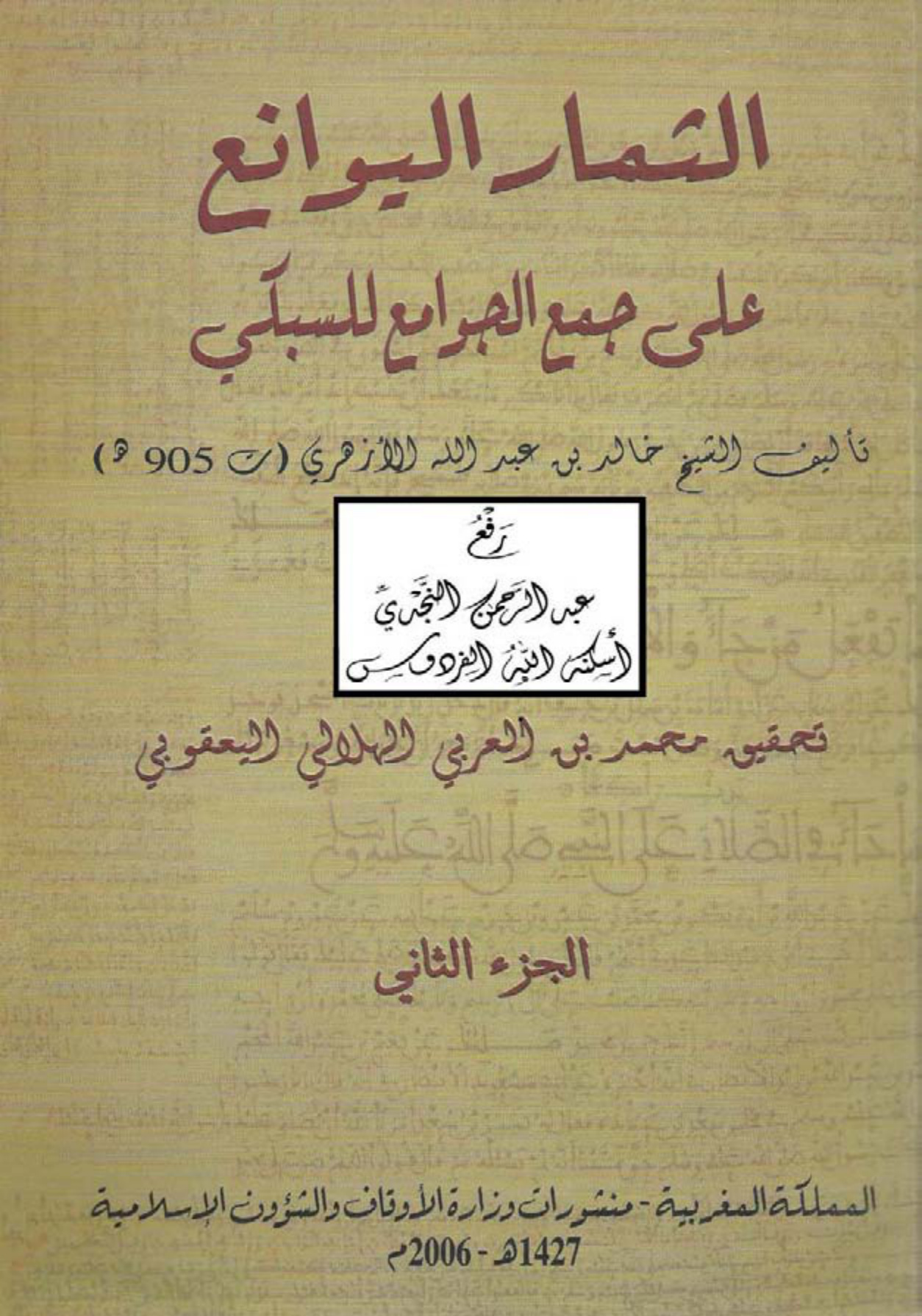 الثمار اليوانع على جمع الجوامع للسبكي الجزء الثاني