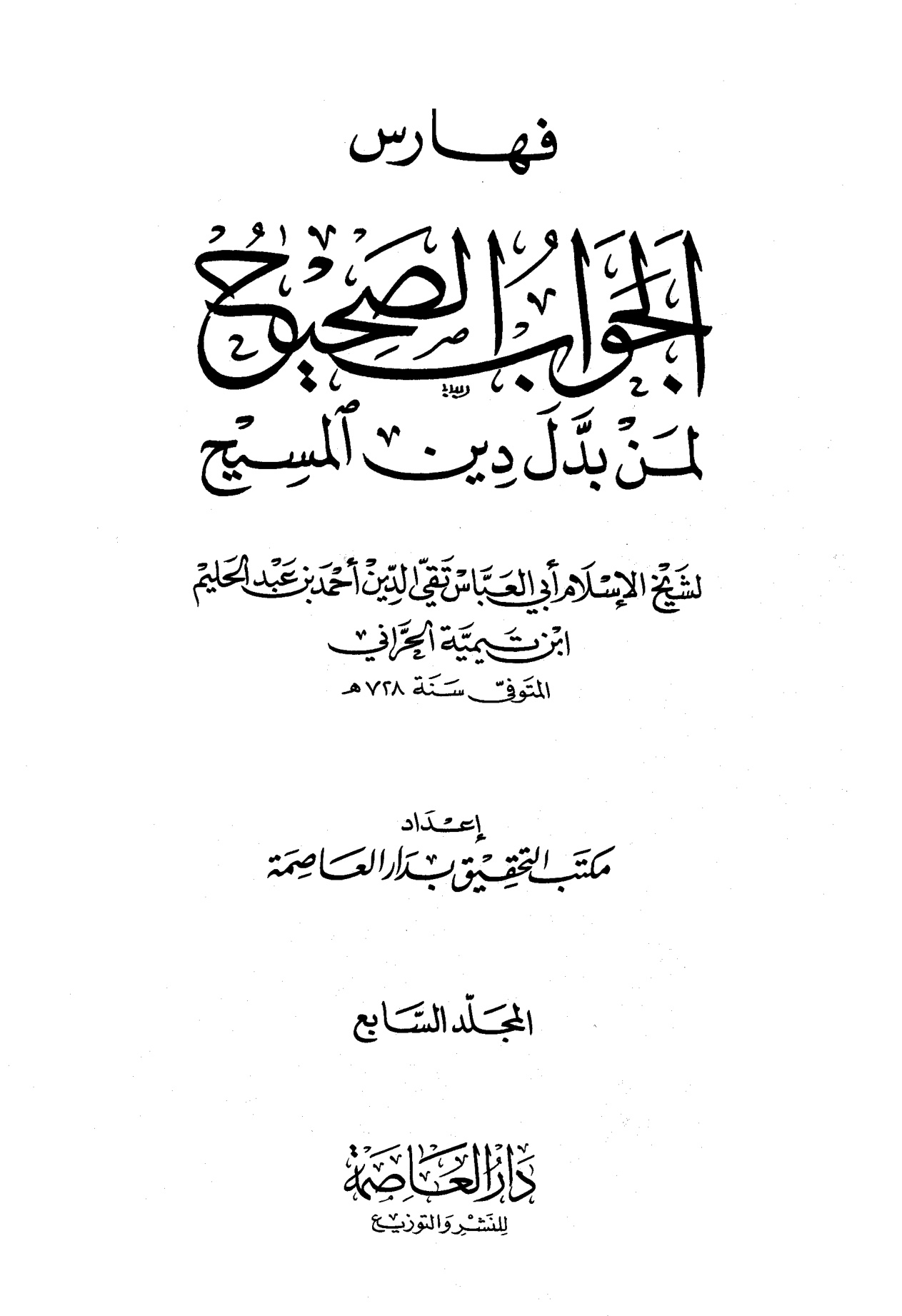 الجواب الصحيح لمن بدل دين المسيح المجلد السابع