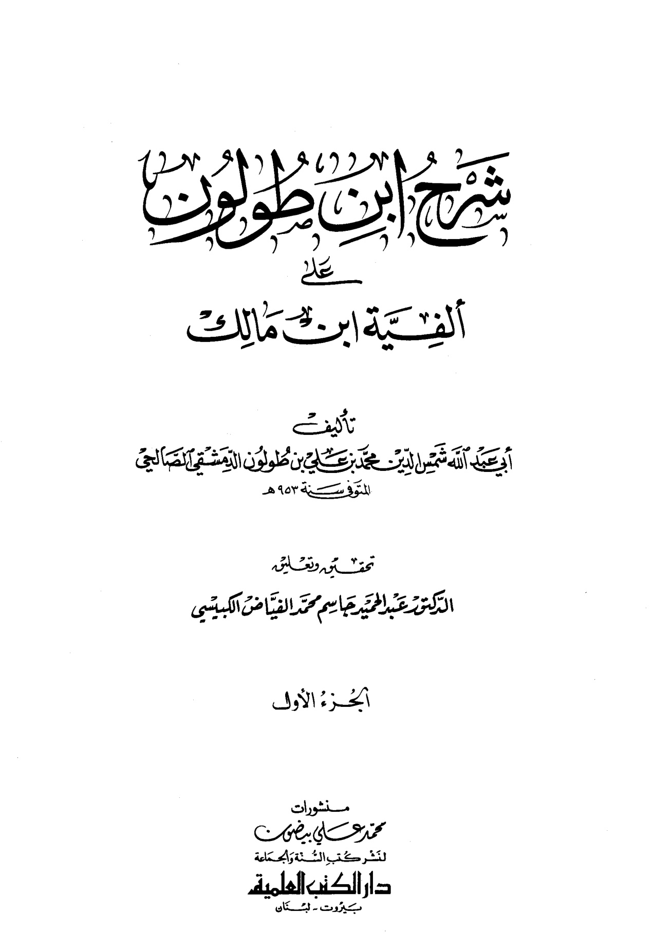 شرح ابن طولون على ألفية ابن مالك الجزء الأول