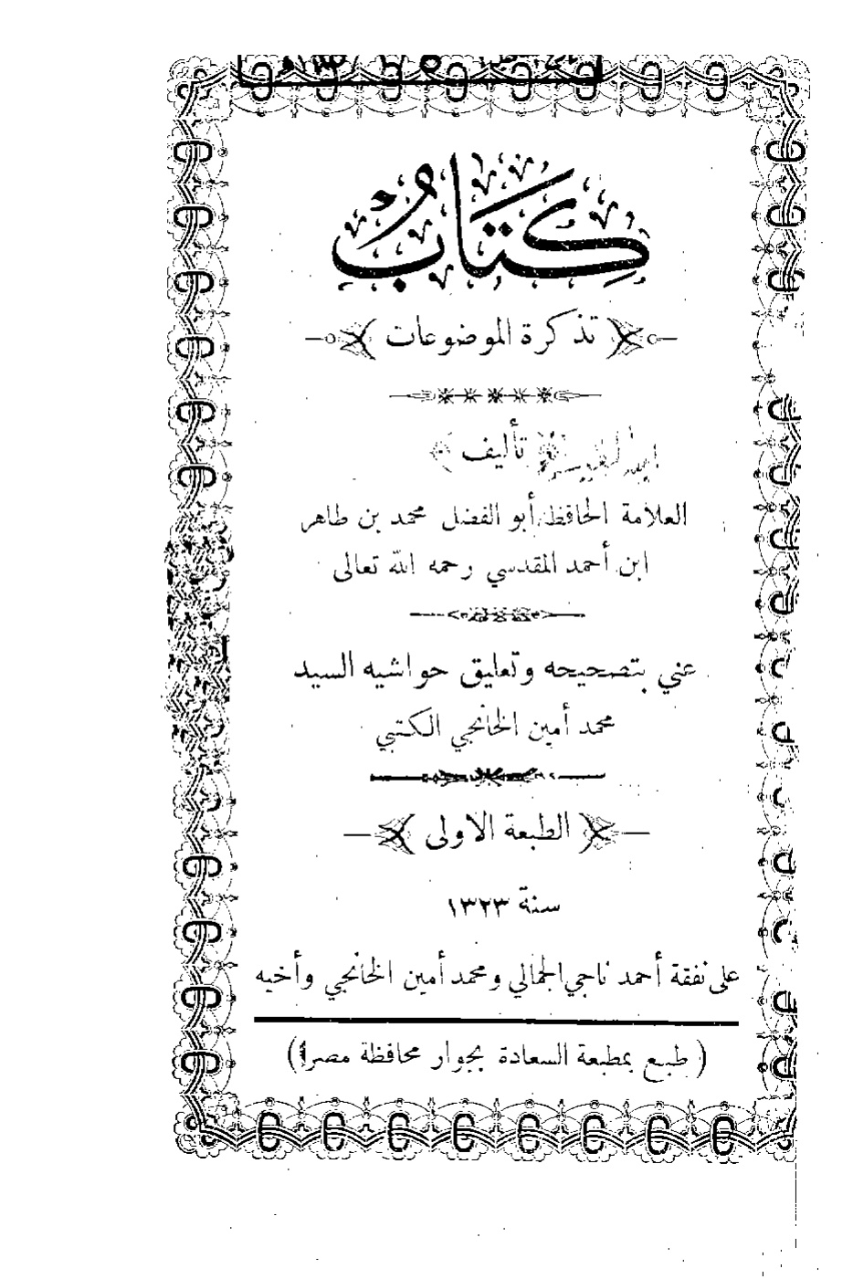 كتاب تذكرة الموضوعات للمقدسي