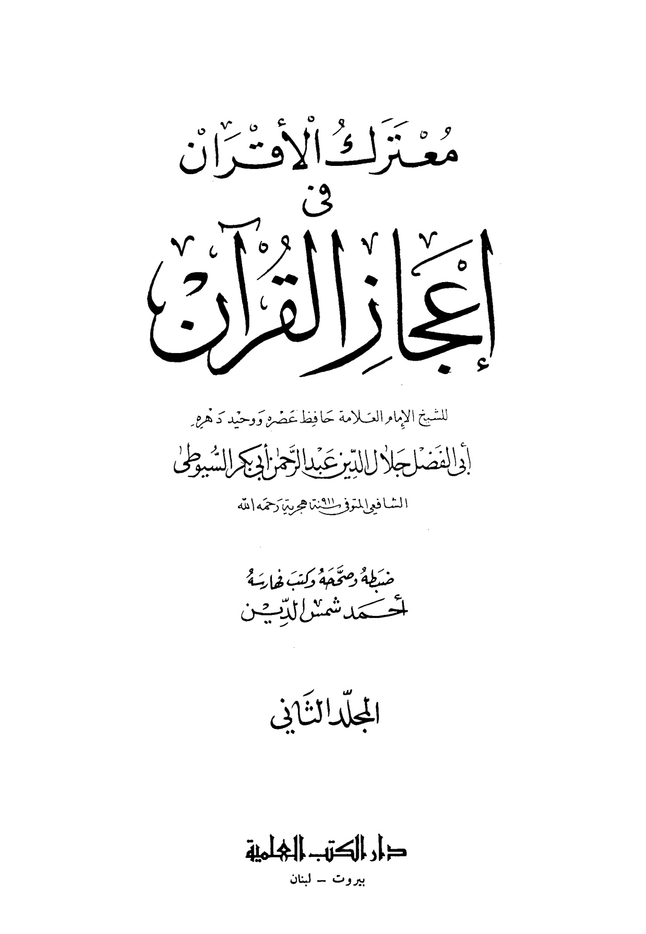 معترك الأقران في إعجاز القرآن، المجلد الثاني