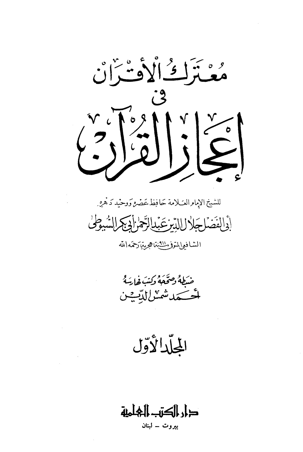 معترك الأقران في إعجاز القرآن، المجلد الأول